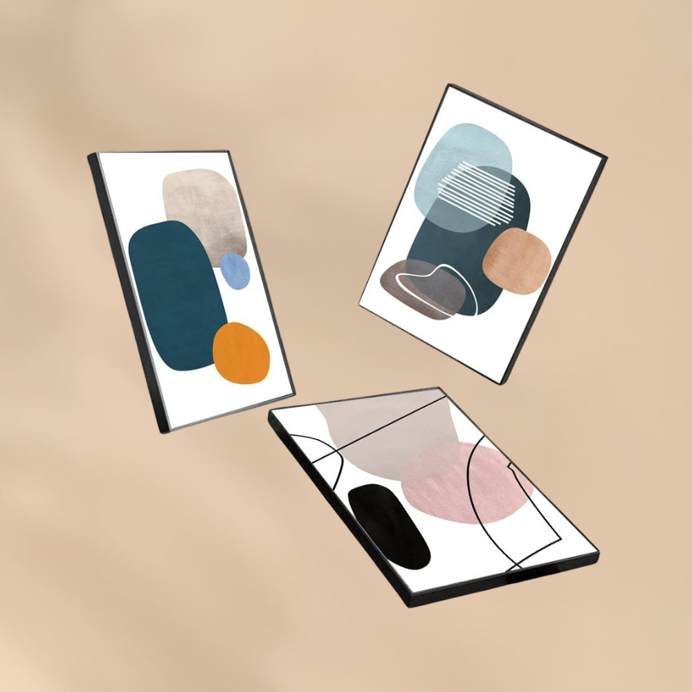 These canvas prints just make a room feel good. The colors are soft and modern — deep blue, blush pink, that little pop of mustard — somehow calm and lively at the same time. The canvas has this warm, natural texture that makes everything look more “put together” without even trying. Hang them up, and your space suddenly feels brighter, cozier, like a place you actually want to slow down in.