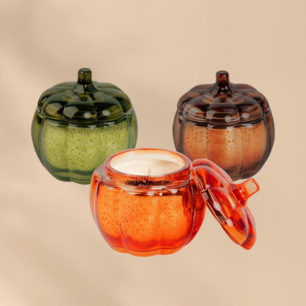 Pumpkin Glass Candle Set Fall Home Decor Cozy Autumn Scented Gift
